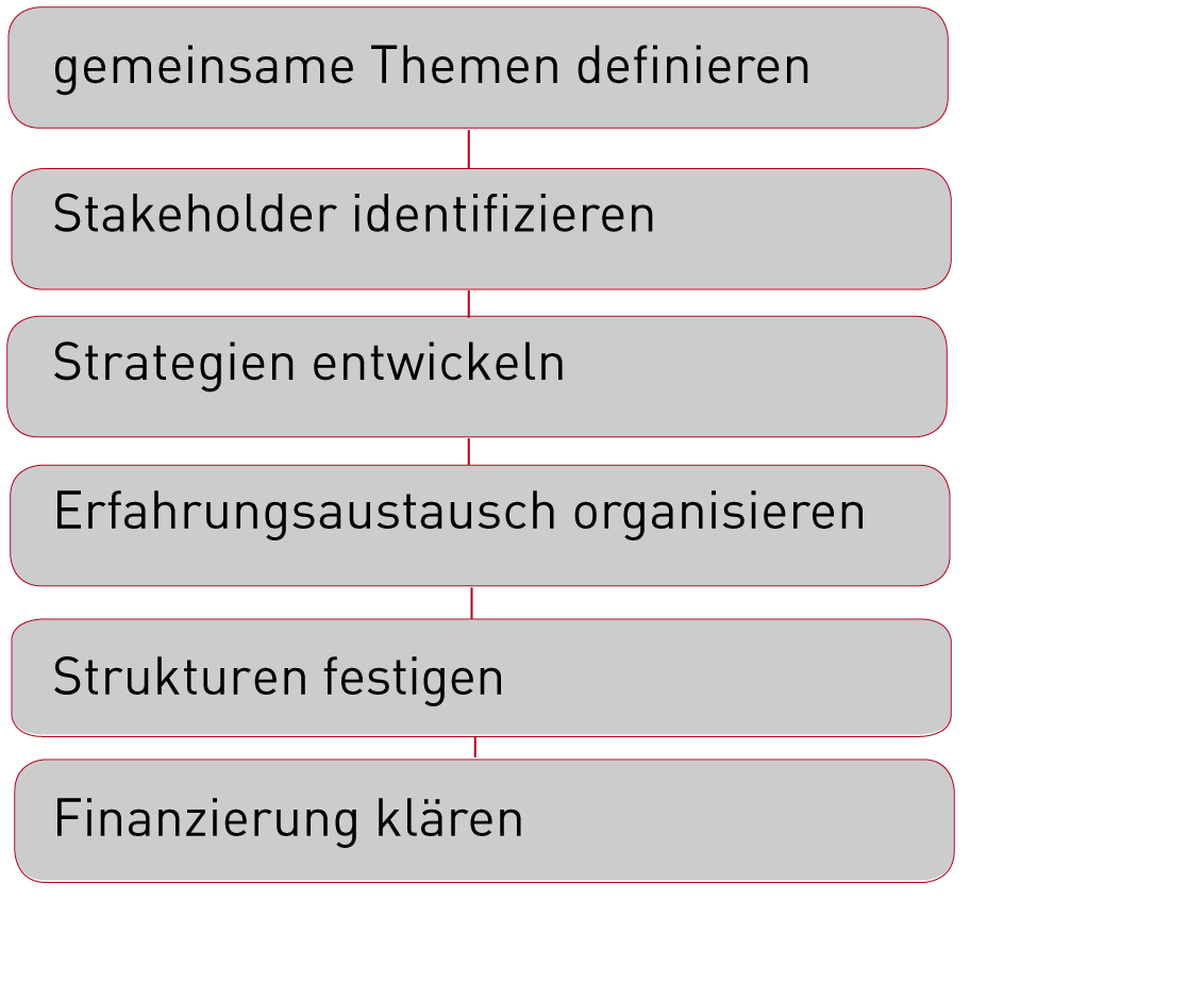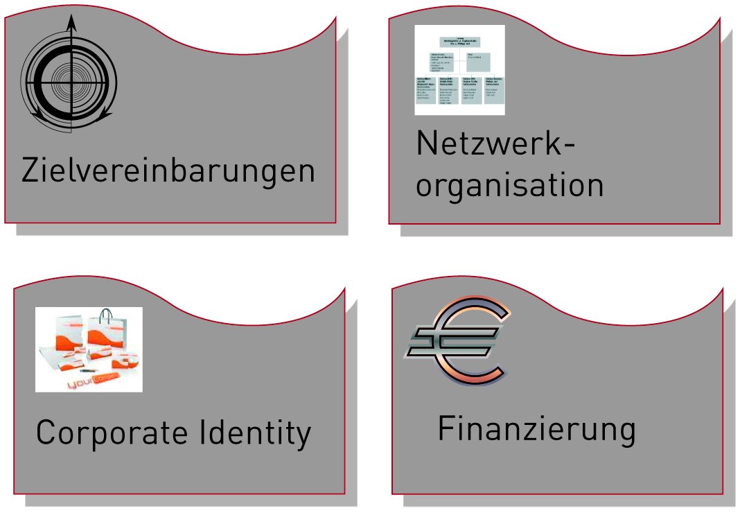 An der Schnittstelle zwischen Politik, Verwaltung und Unternehmen prüfen wir die Machbarkeit und befassen uns mit den Potenzialen von Unternehmensnetzwerken. Wir unterstützen die Akteure bei Initiierung und Aufbau adäquater Strukturen. Gemeinsam mit den Netzwerkfirmen entwickeln wir Strategien und Organisationsformen, die eine nachhaltige Kooperation sicherstellen.