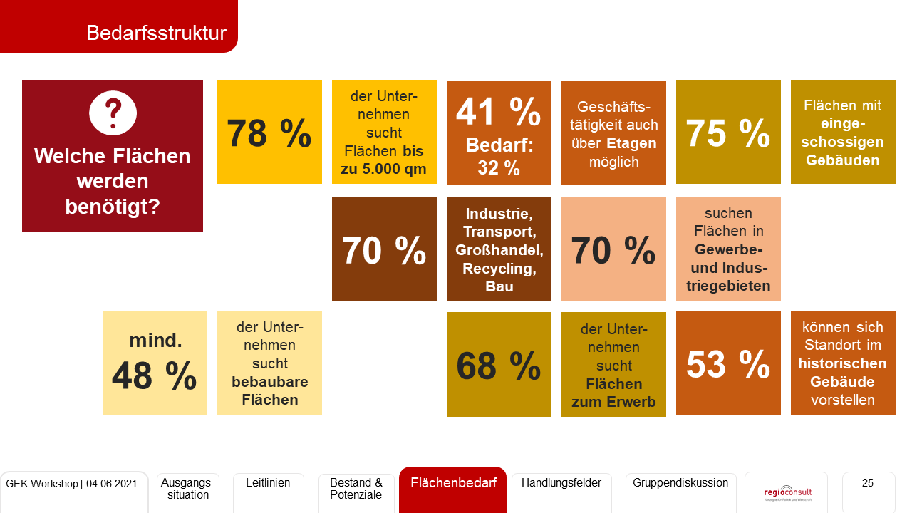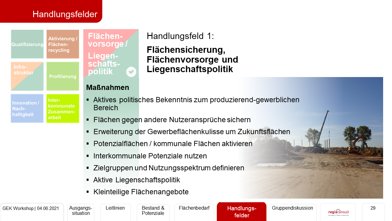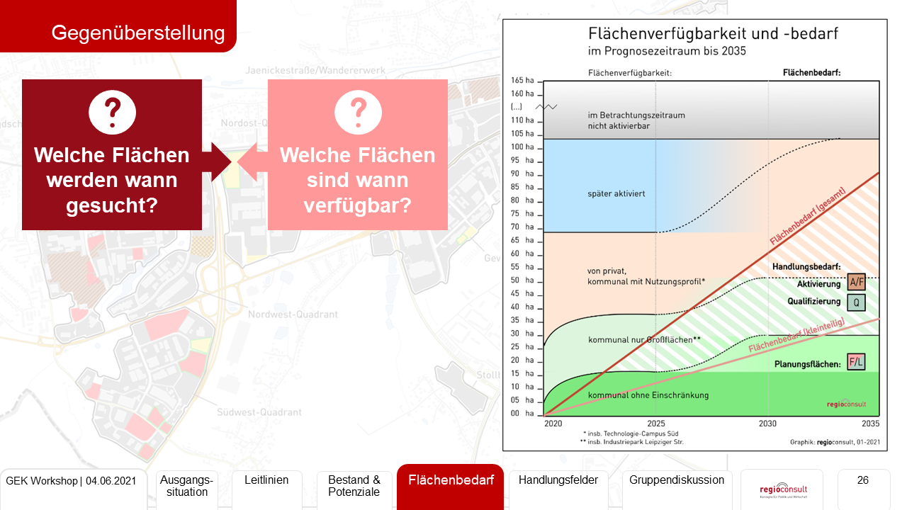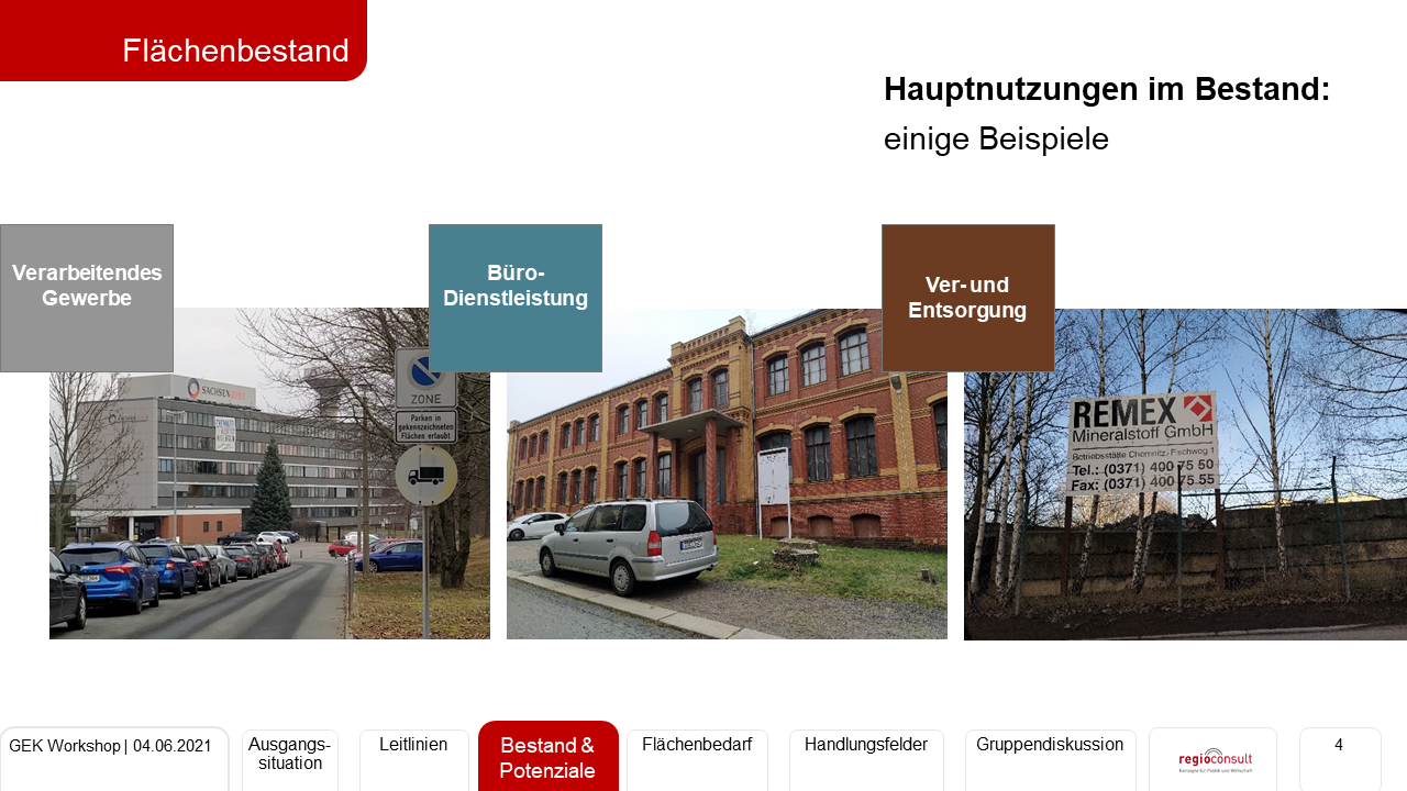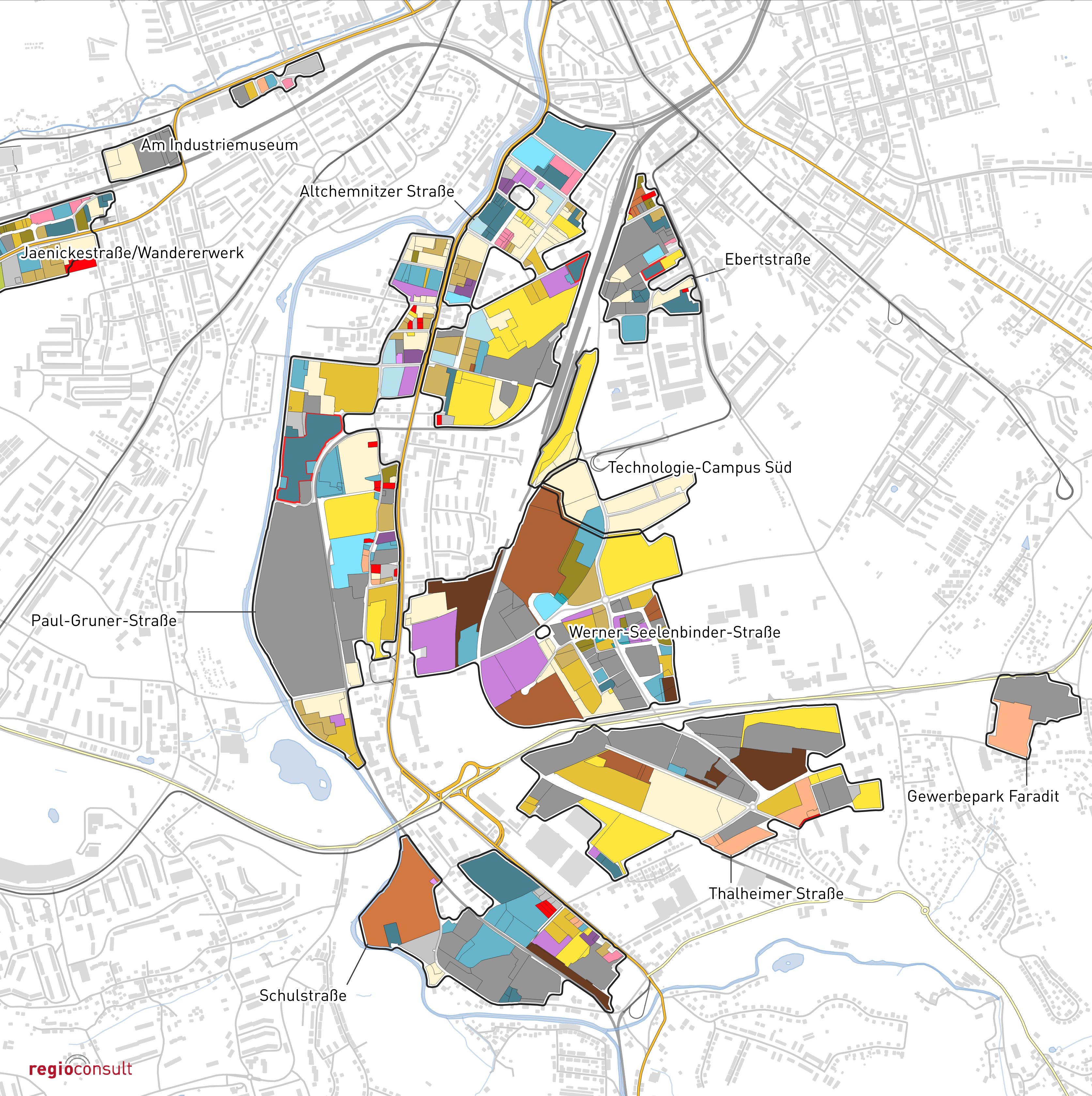 Erarbeitung eines Gewerbeflächenentwicklungskonzept zur Stärkung der regionalen Wachstumspotentiale der Stadt Chemnitz. Durchführung einer Totalerhebung von Grundstücken und Nutzungen. Bewertung der Gewerbeflächenpotentiale sowie Prognose der Perspektiven des Flächenbedarfs. Erarbeitung von Leitlinien der Entwicklung sowie eines umsetzungsorientierten Handlungskonzepts zur Sicherung und Weiterentwicklung der Gewerbeflächen nach Handlungsfeldern.