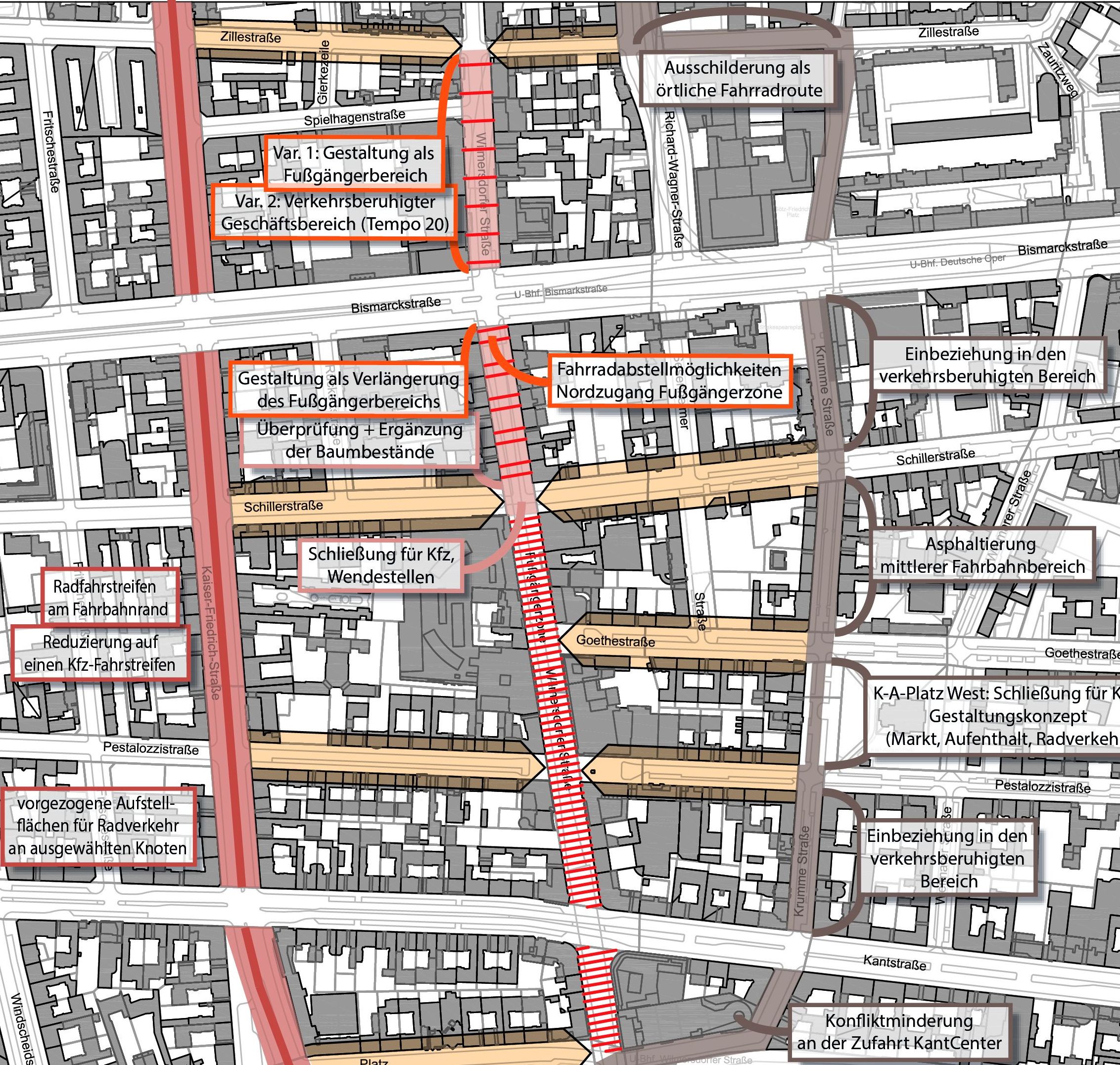 Rahmenbedingungen für die Verlängerung der bestehenden Fußgängerzone. Bewertung von Gestaltungsalternativen. Prüfung von Möglichkeiten für die Umfahrung, insbesondere durch den Radverkehr.